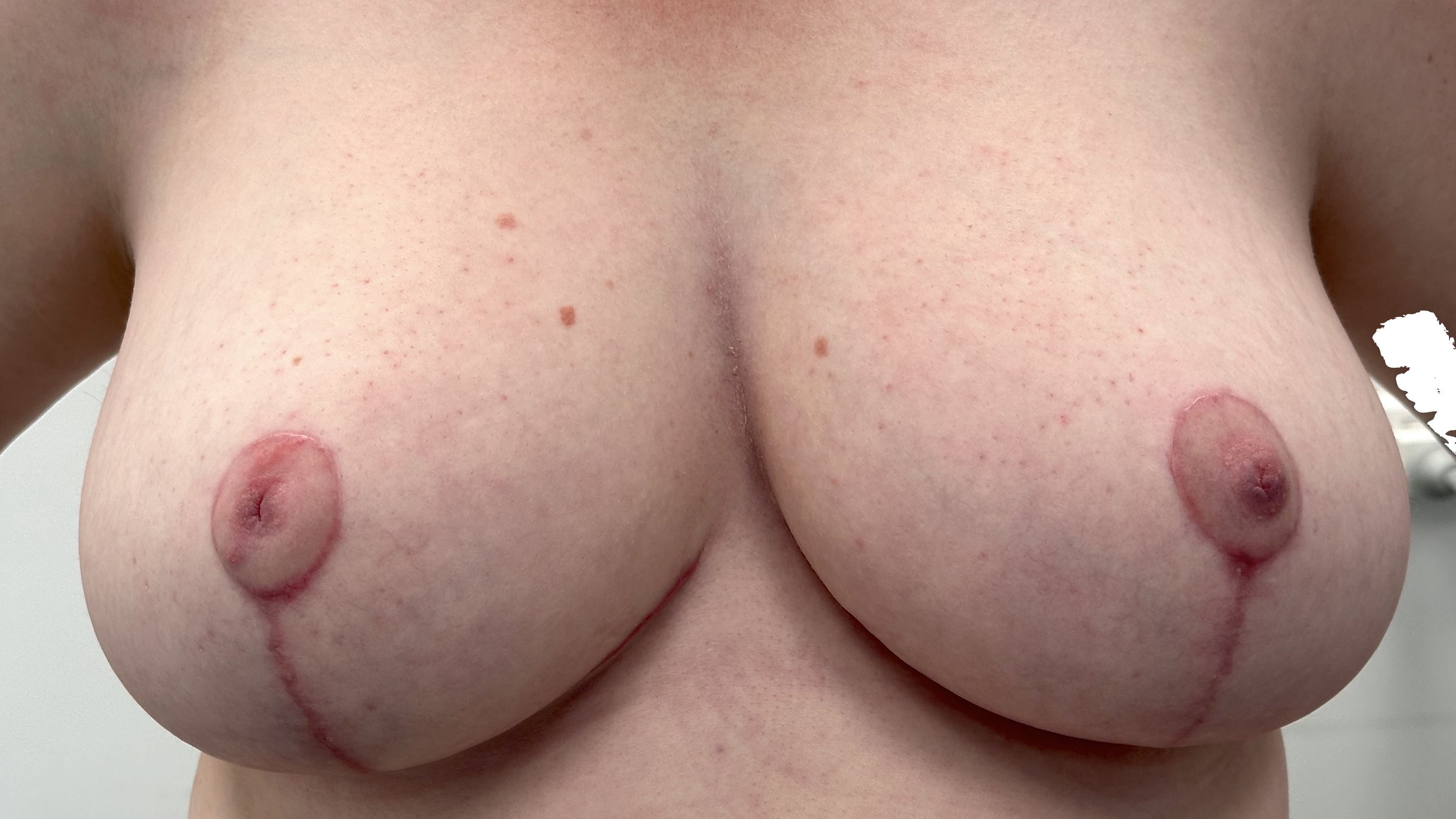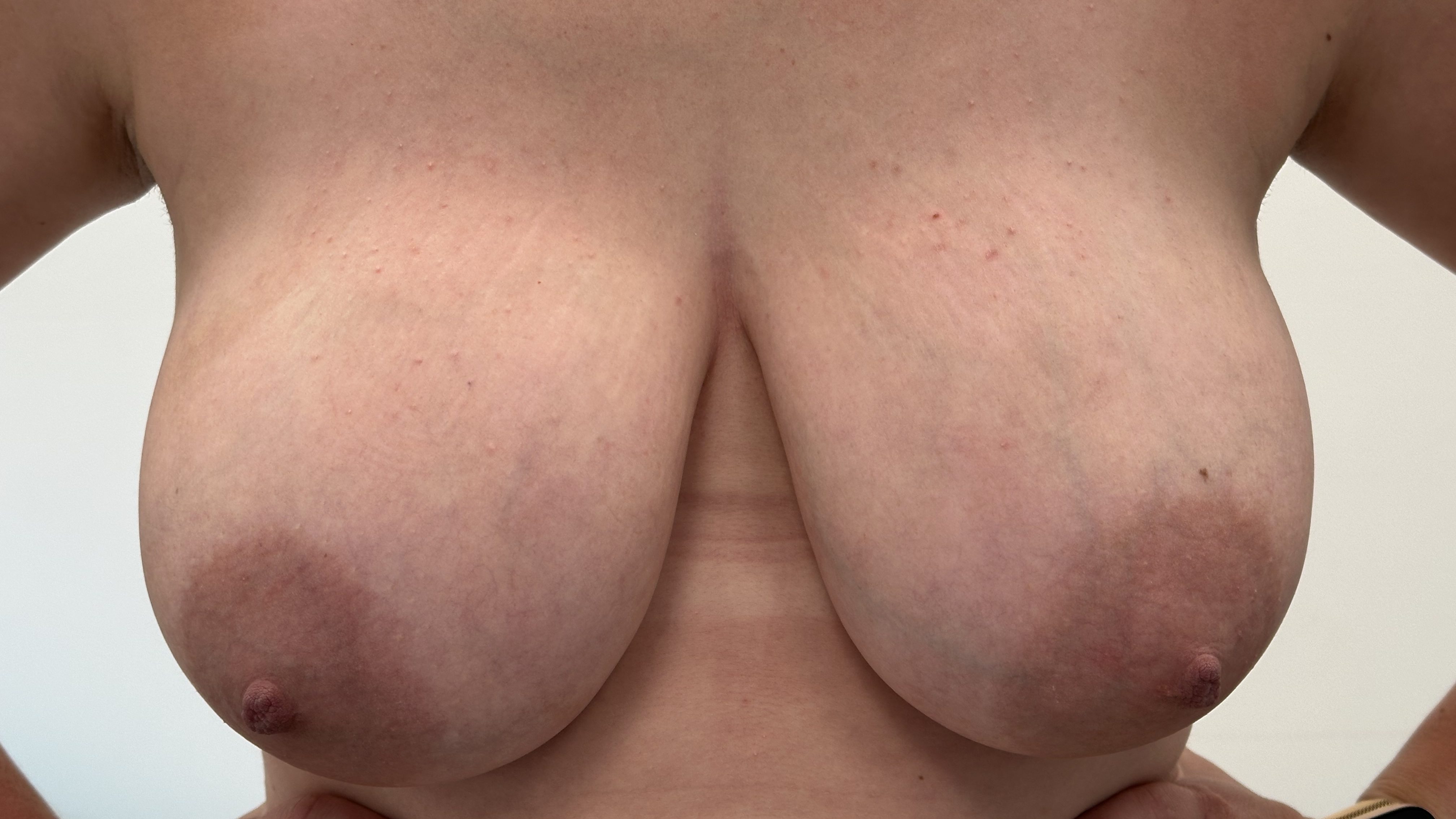 This patient has wanted to have a breast reduction since she was a teenager. Finally, after breast feeding two kids she chose to have the procedure done. She wore G to H cup bras and had over 600 grams of tissue removed in total.