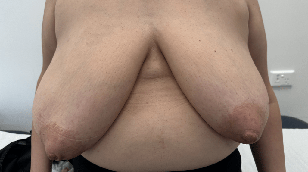 She had a left therapeutic mammoplasty with right breast symmetrising reduction at the same time.